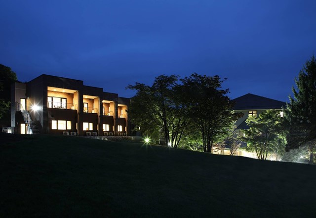 コース1番ホールを望む小丘に、DX和洋室4室・DXトリプルルーム4室計8室、もちろんゴルフ場クラブハウスと同じ敷地内で移動も楽々。客室はレイアウト、眺めにこだわった作りになっています。